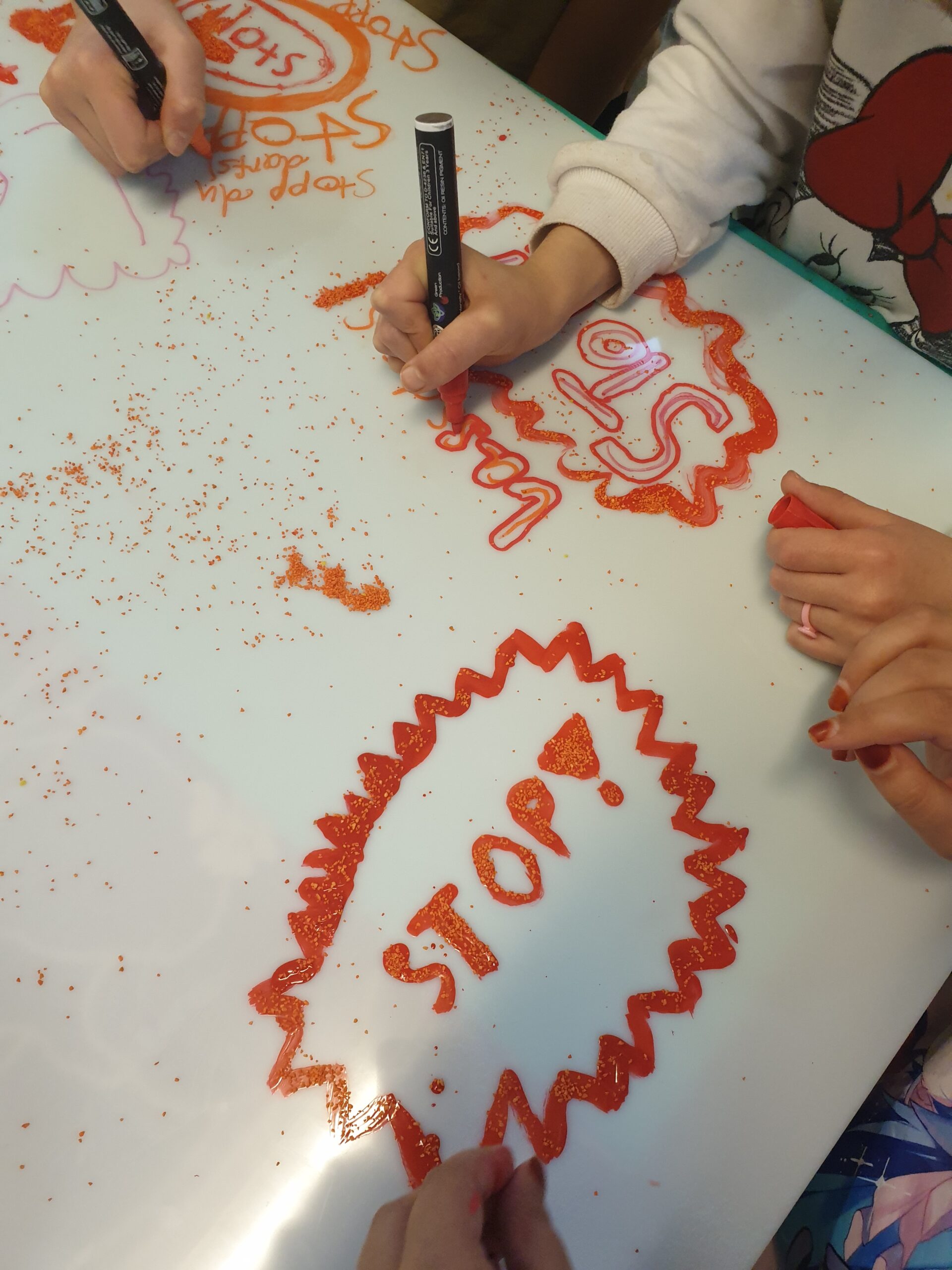 Im Mädchenclub Angebot im Hort Müssenredder machen die Kinder gerne gemeinsam große, aussagekräftige Bilder.